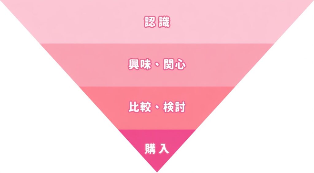 geminiというAIにマーケティングファネルを作成してと言って作ってもらいました。マーケティングファネルに従って歯医者にあてはめてみます。